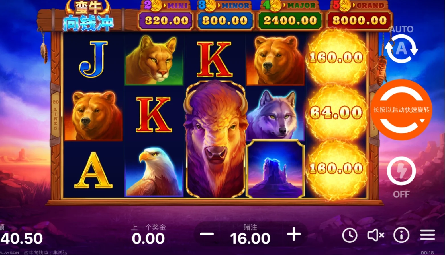 此外,遊戲還透過視覺和音效強化了玩家的沉浸體驗,每當進入獎勵回合或觸發X2倍獎金時,畫面會呈現震撼的動畫效果與音樂,讓玩家有如置身於財富爆發的瞬間。無論是喜愛冒險挑戰的玩家,還是追求高額彩金的高手,都能在《蠻牛向錢衝-集鴻運》中找到屬於自己的勝利時刻。