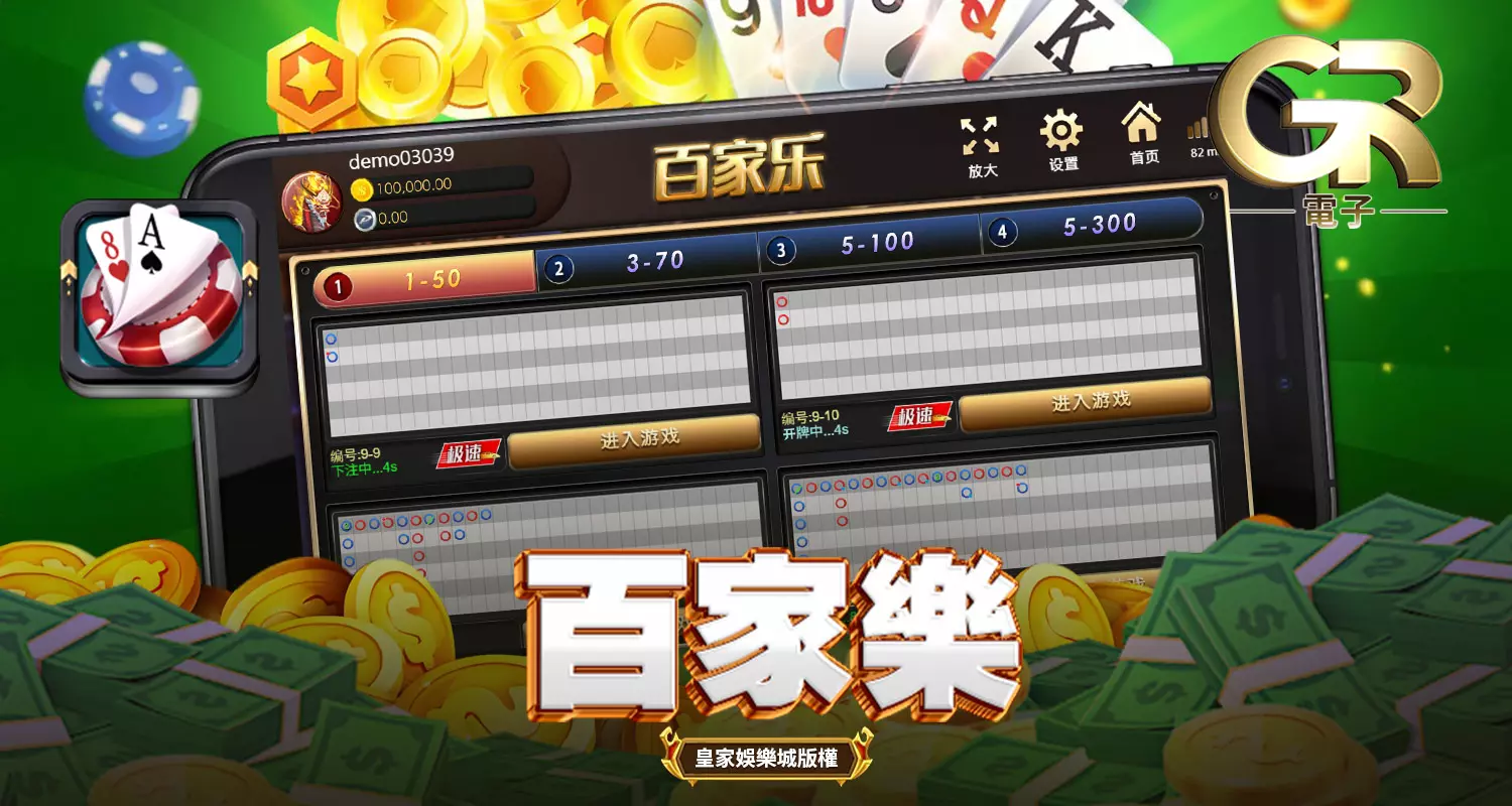 好路棋牌電子百家樂的玩法直觀但充滿變數,每一局牌都充滿未知與驚喜,讓玩家能夠感受到極具張力的博弈快感。在好路棋牌電子的《百家樂》中,遊戲共分為4種場次,讓玩家可以根據自身的資金與下注策略,選擇最適合自己的場次。