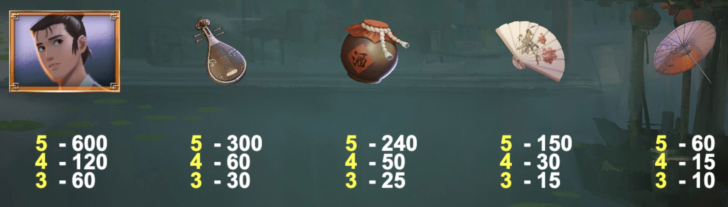 《BT電子白蛇傳》的視覺設計上可說下足功夫,以水墨畫為靈感,營造出濃濃中國古典韻味。遊戲背景描繪的是煙雨迷濛的西湖景致,蓮花點點、柳影婆娑,彷彿讓人置身於一幅動態的國畫中。轉軸上的圖案設計也極具東方文化風情,包括油紙傘、古箏、酒壺、折扇等中國傳統物件,每一次旋轉都像是在翻閱一段民間故事。