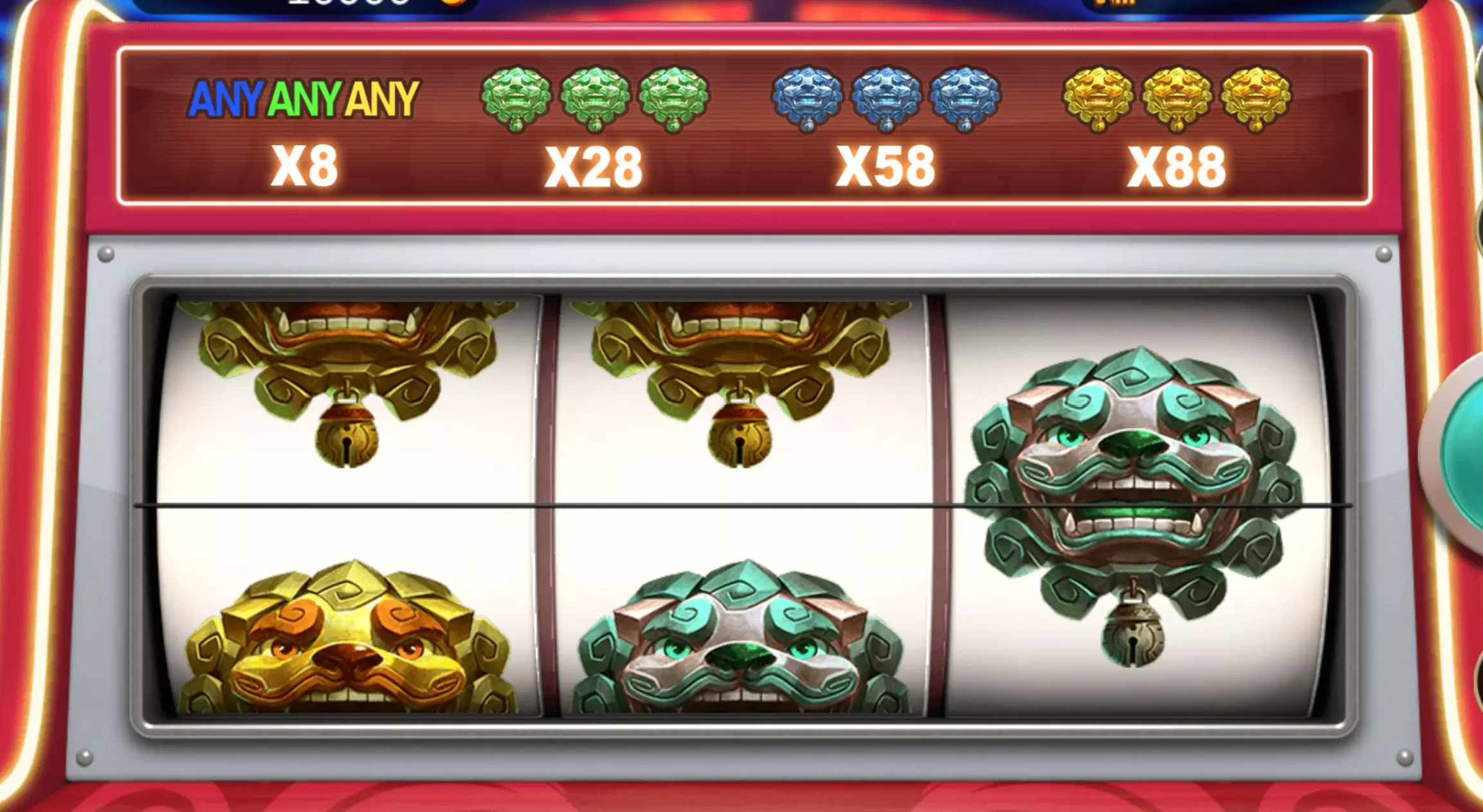 而綠色石獅則提供28倍回報,兼具中獎頻率與獎金平衡;即使轉出的三個石獅並不全為相同顏色,遊戲也設計了額外獎勵,只要三種不同色石獅連線,同樣能拿下8倍獎金,此設計降低了中獎門檻,也讓遊戲過程更加流暢、有趣。