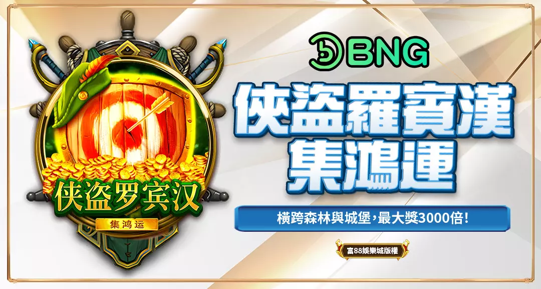 準備好跟隨傳奇俠盜羅賓漢的腳步,開啟一場橫跨森林與城堡的冒險之旅了嗎?《BNG電子俠盜羅賓漢-集鴻運》將帶領玩家進入一個充滿正義與財富的世界,在這裡,玩家不僅可以體驗到劫富濟貧的快感,還能一邊追尋金幣與寶藏,一邊挑戰超高額的彩金!
