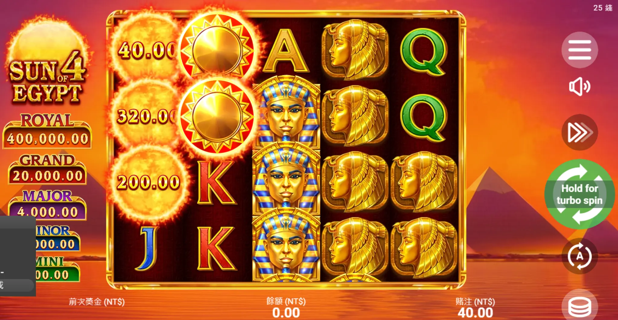BNG電子太陽神殿4-集鴻運這款遊戲採用5×4轉軸設計,擁有25條賠付線,將古埃及法老的神秘元素與現代老虎機的爽快節奏完美結合。不論你是老玩家,還是第一次接觸這個系列的新朋友,這款遊戲都能帶你走入一場尋寶與財富的華麗冒險。