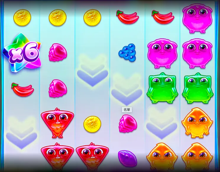 BNG電子彩虹果凍這款遊戲搭載了最核心的「雪崩消除」機制。當你成功組成一個獎金組合,這些圖案會直接從盤面上消除,然後上方的圖案會自然掉落填補空位,並再生成新的符號。這個過程可以不斷連鎖,只要每次掉落後仍然形成新的組合,雪崩就會一直持續下去,直到沒有新的組合為止。