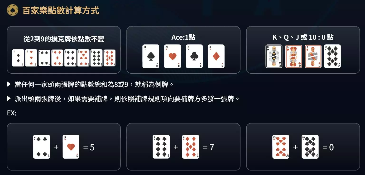 常見的下注方式,包括下注莊家,莊家勝率略高於閒家,因此許多玩家會選擇下注莊家,並支付少量的手續費;下注閒家,如果你認為閒家將獲勝,則可以選擇下注閒家,這是一種不需要支付手續費的投注選擇;或下注和局,和局指的是莊家與閒家的最終點數相同,和局的賠率較高,但發生的機率較低,因此風險較大。