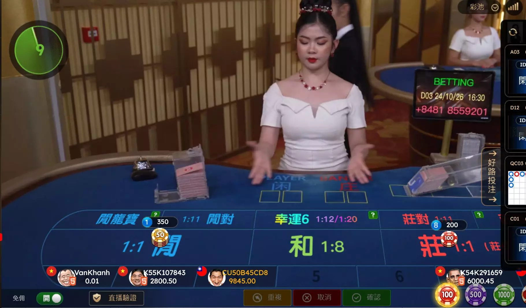 DG真人百家樂能夠即時處理和解決玩家的問題,確保遊戲過程的公平性和公正性。這種服務讓玩家在下注百家樂對子和幸運六等遊戲時,能夠完全專注於策略,而不必擔心任何潛在的問題。