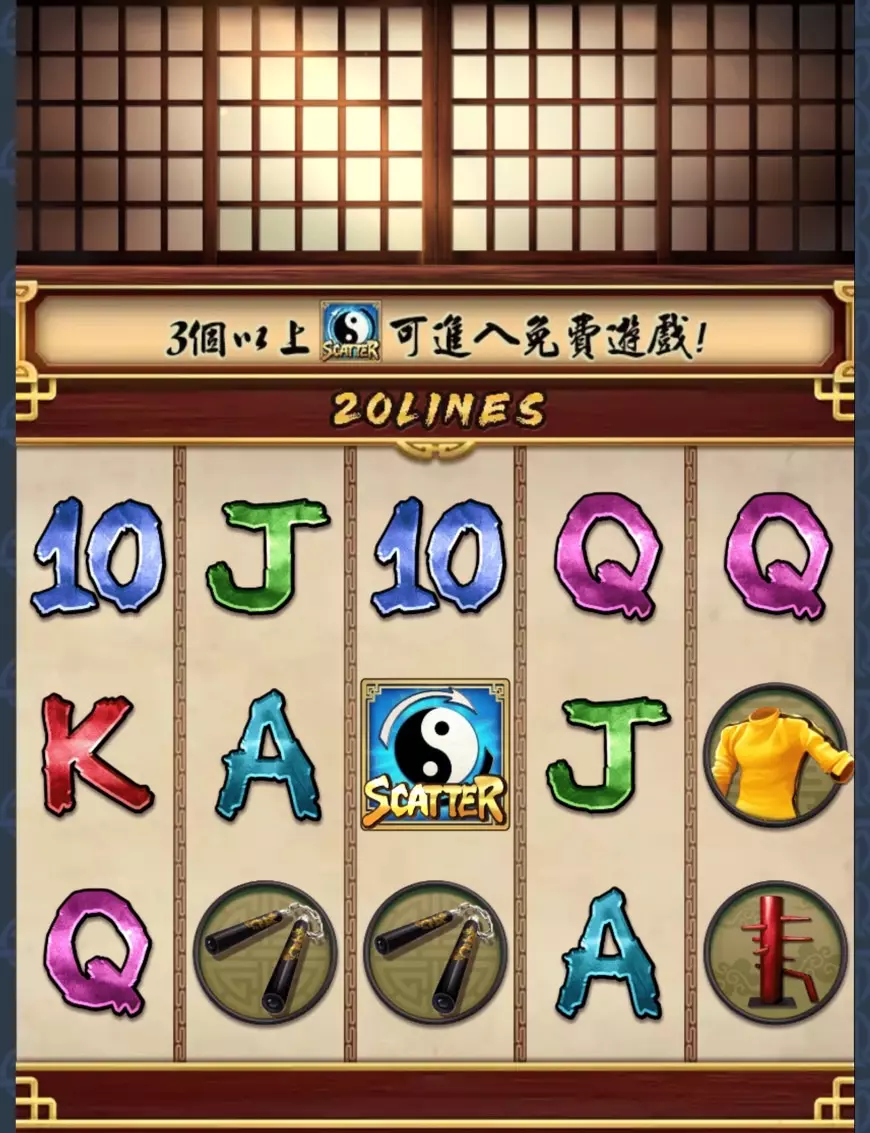 SPLUS電子推出的《SPLUS電子猛龍傳說》是一款以功夫巨星李小龍為主題的電子老虎機遊戲,結合東方武術元素與刺激的獎金機制,為玩家帶來拳拳到肉的震撼體驗。這款遊戲採用經典的3×5輪盤設計與20條固定賠付線,同時搭配移動百搭與免費遊戲功能,讓玩家在旋轉過程中體驗連續重轉與倍數翻倍的爽快感。